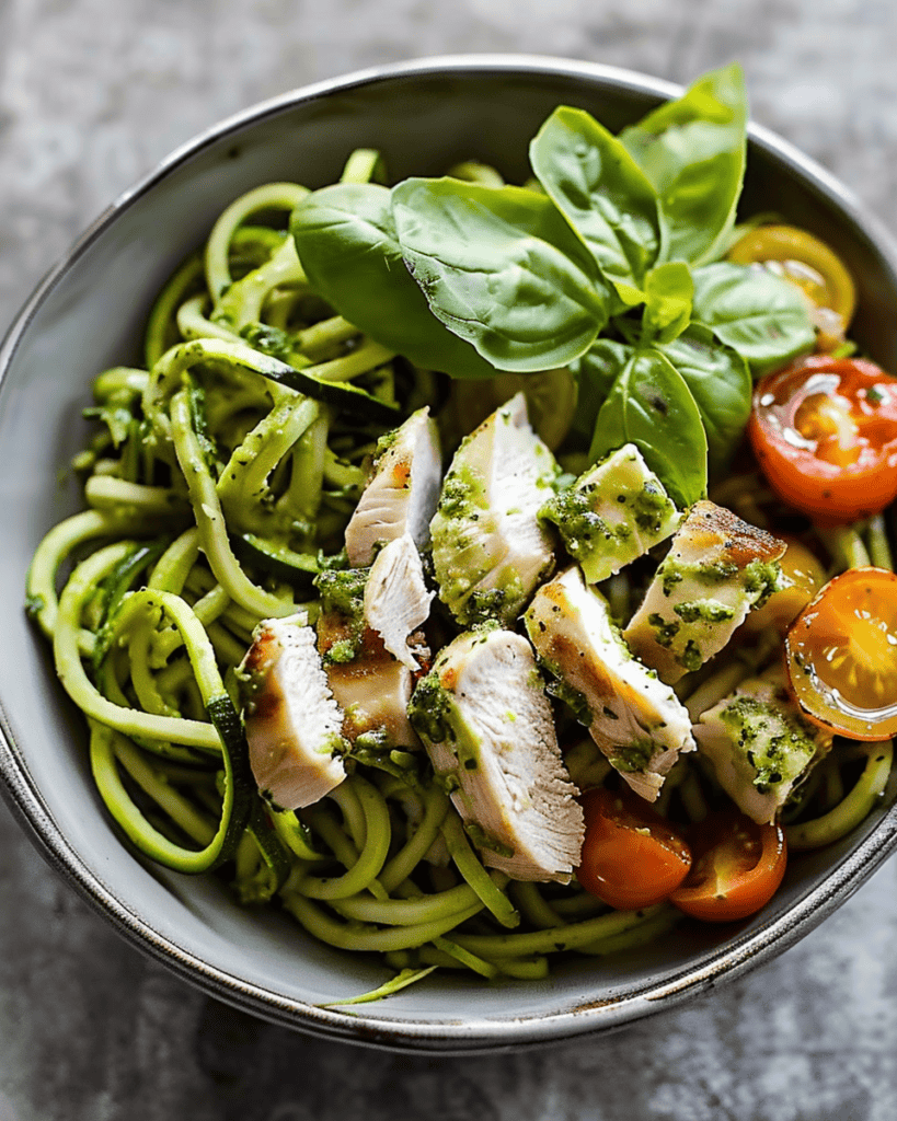 Noodle Chicken Pesto Bowl Indulge in the fresh, vibrant flavors of this Noodle Chicken Pesto Bowl. This dish combines tender chicken breast, zucchini noodles, and a rich basil pesto, creating …